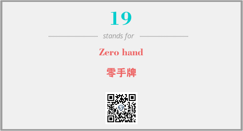 上述内容是“Zero hand”作为“19”的缩写,解释为“零手牌”时的信息,以及英文缩略词19所代表的英文单词,其对应的中文拼音、详细解释以及在英文中的流行度和相关分类、应用领域及应用示例等。