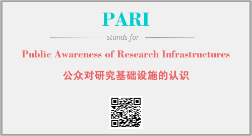 上述内容是“Public Awareness of Research Infrastructures”作为“PARI”的缩写,解释为“公众对研究基础设施的认识”时的信息,以及英文缩略词PARI所代表的英文单词,其对应的中文拼音、详细解释以及在英文中的流行度和相关分类、应用领域及应用示例等。
