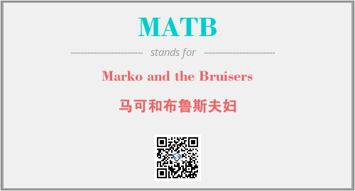 上述内容是“Marko and the Bruisers”作为“MATB”的缩写,解释为“马可和布鲁斯夫妇”时的信息,以及英文缩略词MATB所代表的英文单词,其对应的中文拼音、详细解释以及在英文中的流行度和相关分类、应用领域及应用示例等。