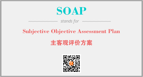 上述内容是“Subjective Objective Assessment Plan”作为“SOAP”的缩写,解释为“主客观评价方案”时的信息,以及英文缩略词SOAP所代表的英文单词,其对应的中文拼音、详细解释以及在英文中的流行度和相关分类、应用领域及应用示例等。