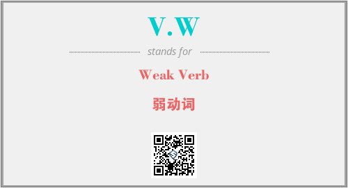 英文缩略词“V.W”经常作为“Weak Verb”的英文缩写来使用,中文表示:“弱动词”。本文将详细介绍英文缩写词V.W所代表英文单词,其对应的中文拼音、详细解释以及在英语中的流行度。此外,还有关于缩略词V.W的分类、应用领域及相关应用示例等。