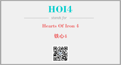 以上为Hearts Of Iron 4英文缩略词HOI4的中文解释,以及该英文缩写在英语的流行度、分类和应用领域方面的信息。
