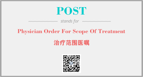 上述内容是“Physician Order For Scope Of Treatment”作为“POST”的缩写,解释为“治疗范围医嘱”时的信息,以及英文缩略词POST所代表的英文单词,其对应的中文拼音、详细解释以及在英文中的流行度和相关分类、应用领域及应用示例等。