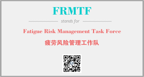 上述内容是“Fatigue Risk Management Task Force”作为“FRMTF”的缩写,解释为“疲劳风险管理工作队”时的信息,以及英文缩略词FRMTF所代表的英文单词,其对应的中文拼音、详细解释以及在英文中的流行度和相关分类、应用领域及应用示例等。