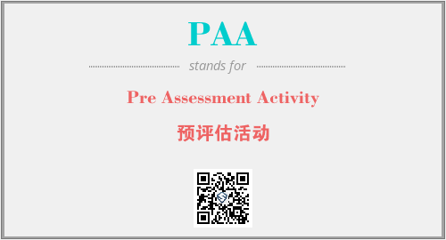 上述内容是“Pre Assessment Activity”作为“PAA”的缩写,解释为“预评估活动”时的信息,以及英文缩略词PAA所代表的英文单词,其对应的中文拼音、详细解释以及在英文中的流行度和相关分类、应用领域及应用示例等。