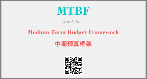 上述内容是“Medium Term Budget Framework”作为“MTBF”的缩写,解释为“中期预算框架”时的信息,以及英文缩略词MTBF所代表的英文单词,其对应的中文拼音、详细解释以及在英文中的流行度和相关分类、应用领域及应用示例等。