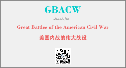 英文缩略词“GBACW”经常作为“Great Battles of the American Civil War”的英文缩写来使用,中文表示:“美国内战的伟大战役”。本文将详细介绍英文缩写词GBACW所代表英文单词,其对应的中文拼音、详细解释以及在英语中的流行度。此外,还有关于缩略词GBACW的分类、应用领域及相关应用示例等。