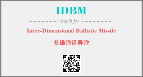 上述内容是“Inter-Dimensional Ballistic Missile”作为“IDBM”的缩写,解释为“多维弹道导弹”时的信息,以及英文缩略词IDBM所代表的英文单词,其对应的中文拼音、详细解释以及在英文中的流行度和相关分类、应用领域及应用示例等。