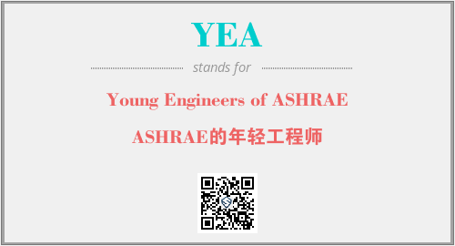 上述内容是“Young Engineers of ASHRAE”作为“YEA”的缩写,解释为“ASHRAE的年轻工程师”时的信息,以及英文缩略词YEA所代表的英文单词,其对应的中文拼音、详细解释以及在英文中的流行度和相关分类、应用领域及应用示例等。