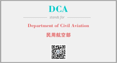 英文缩略词“DCA”经常作为“Department of Civil Aviation”的英文缩写来使用,中文表示:“民用航空部”。本文将详细介绍英文缩写词DCA所代表英文单词,其对应的中文拼音、详细解释以及在英语中的流行度。此外,还有关于缩略词DCA的分类、应用领域及相关应用示例等。