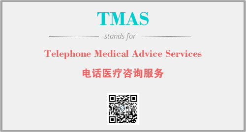 英文缩略词“TMAS”经常作为“Telephone Medical Advice Services”的英文缩写来使用,中文表示:“电话医疗咨询服务”。本文将详细介绍英文缩写词TMAS所代表英文单词,其对应的中文拼音、详细解释以及在英语中的流行度。此外,还有关于缩略词TMAS的分类、应用领域及相关应用示例等。