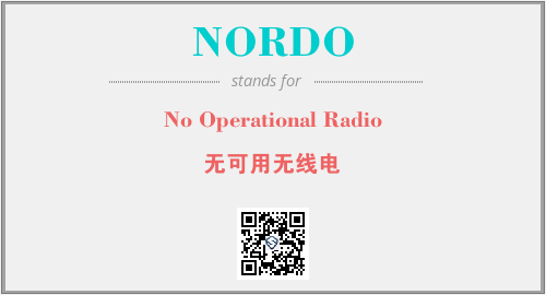 英文缩略词“NORDO”经常作为“No Operational Radio”的英文缩写来使用,中文表示:“无可用无线电”。本文将详细介绍英文缩写词NORDO所代表英文单词,其对应的中文拼音、详细解释以及在英语中的流行度。此外,还有关于缩略词NORDO的分类、应用领域及相关应用示例等。