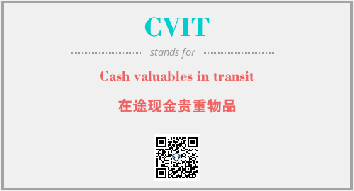 英文缩略词“CVIT”经常作为“Cash valuables in transit”的英文缩写来使用,中文表示:“在途现金贵重物品”。本文将详细介绍英文缩写词CVIT所代表英文单词,其对应的中文拼音、详细解释以及在英语中的流行度。此外,还有关于缩略词CVIT的分类、应用领域及相关应用示例等。