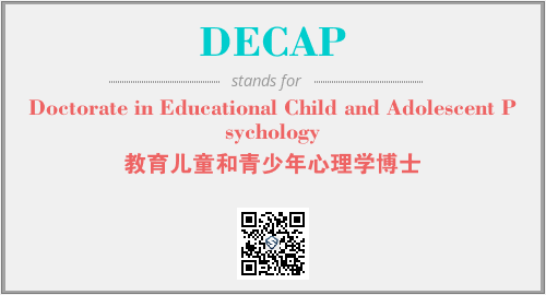 上述内容是“Doctorate in Educational Child and Adolescent Psychology”作为“DECAP”的缩写,解释为“教育儿童和青少年心理学博士”时的信息,以及英文缩略词DECAP所代表的英文单词,其对应的中文拼音、详细解释以及在英文中的流行度和相关分类、应用领域及应用示例等。