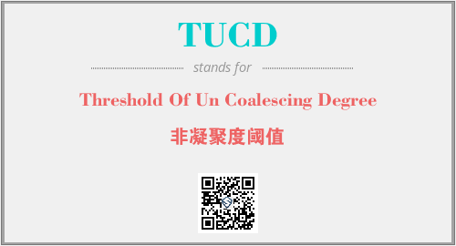 上述内容是“Threshold Of Un Coalescing Degree”作为“TUCD”的缩写,解释为“非凝聚度阈值”时的信息,以及英文缩略词TUCD所代表的英文单词,其对应的中文拼音、详细解释以及在英文中的流行度和相关分类、应用领域及应用示例等。