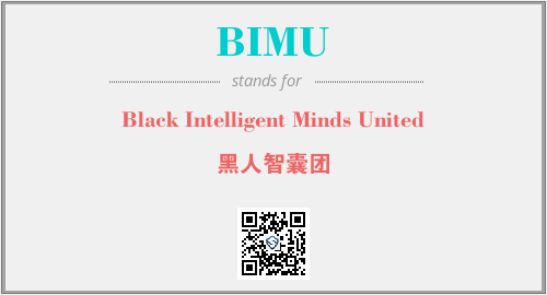 上述内容是“Black Intelligent Minds United”作为“BIMU”的缩写,解释为“黑人智囊团”时的信息,以及英文缩略词BIMU所代表的英文单词,其对应的中文拼音、详细解释以及在英文中的流行度和相关分类、应用领域及应用示例等。