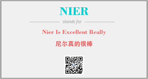 上述内容是“Nier Is Excellent Really”作为“NIER”的缩写,解释为“尼尔真的很棒”时的信息,以及英文缩略词NIER所代表的英文单词,其对应的中文拼音、详细解释以及在英文中的流行度和相关分类、应用领域及应用示例等。