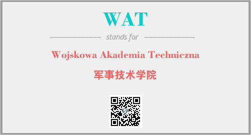 上述内容是“Wojskowa Akademia Techniczna”作为“WAT”的缩写,解释为“军事技术学院”时的信息,以及英文缩略词WAT所代表的英文单词,其对应的中文拼音、详细解释以及在英文中的流行度和相关分类、应用领域及应用示例等。