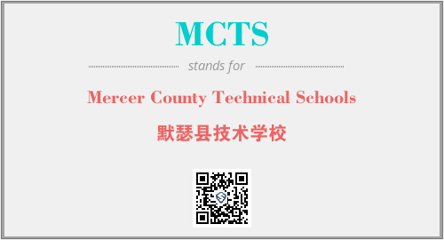 英文缩略词“MCTS”经常作为“Mercer County Technical Schools”的英文缩写来使用,中文表示:“默瑟县技术学校”。本文将详细介绍英文缩写词MCTS所代表英文单词,其对应的中文拼音、详细解释以及在英语中的流行度。此外,还有关于缩略词MCTS的分类、应用领域及相关应用示例等。