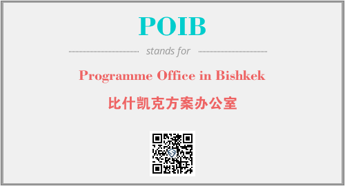 英文缩略词“POIB”经常作为“Programme Office in Bishkek”的英文缩写来使用,中文表示:“比什凯克方案办公室”。本文将详细介绍英文缩写词POIB所代表英文单词,其对应的中文拼音、详细解释以及在英语中的流行度。此外,还有关于缩略词POIB的分类、应用领域及相关应用示例等。