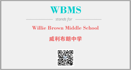以上为Willie Brown Middle School英文缩略词WBMS的中文解释,以及该英文缩写在英语的流行度、分类和应用领域方面的信息。