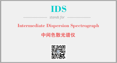 上述内容是“Intermediate Dispersion Spectrograph”作为“IDS”的缩写,解释为“中间色散光谱仪”时的信息,以及英文缩略词IDS所代表的英文单词,其对应的中文拼音、详细解释以及在英文中的流行度和相关分类、应用领域及应用示例等。