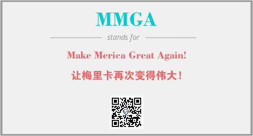 以上为Make Merica Great Again!英文缩略词MMGA的中文解释,以及该英文缩写在英语的流行度、分类和应用领域方面的信息。