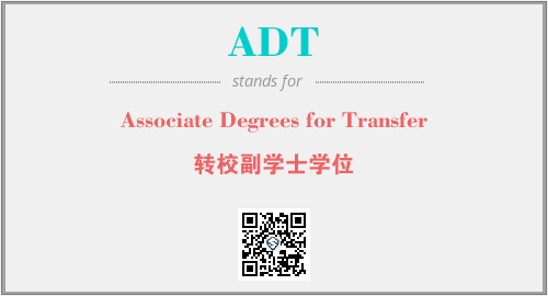 英文缩略词“ADT”经常作为“Associate Degrees for Transfer”的英文缩写来使用,中文表示:“转校副学士学位”。本文将详细介绍英文缩写词ADT所代表英文单词,其对应的中文拼音、详细解释以及在英语中的流行度。此外,还有关于缩略词ADT的分类、应用领域及相关应用示例等。