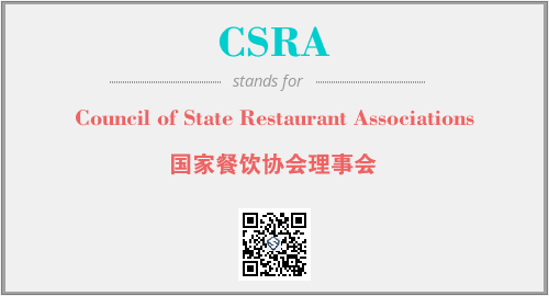 上述内容是“Council of State Restaurant Associations”作为“CSRA”的缩写,解释为“国家餐饮协会理事会”时的信息,以及英文缩略词CSRA所代表的英文单词,其对应的中文拼音、详细解释以及在英文中的流行度和相关分类、应用领域及应用示例等。