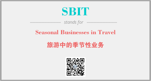 上述内容是“Seasonal Businesses in Travel”作为“SBIT”的缩写,解释为“旅游中的季节性业务”时的信息,以及英文缩略词SBIT所代表的英文单词,其对应的中文拼音、详细解释以及在英文中的流行度和相关分类、应用领域及应用示例等。