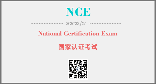 英文缩略词“NCE”经常作为“National Certification Exam”的英文缩写来使用,中文表示:“国家认证考试”。本文将详细介绍英文缩写词NCE所代表英文单词,其对应的中文拼音、详细解释以及在英语中的流行度。此外,还有关于缩略词NCE的分类、应用领域及相关应用示例等。