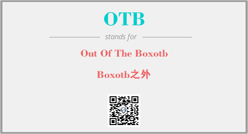 英文缩略词“OTB”经常作为“Out Of The Boxotb”的英文缩写来使用,中文表示:“Boxotb之外”。本文将详细介绍英文缩写词OTB所代表英文单词,其对应的中文拼音、详细解释以及在英语中的流行度。此外,还有关于缩略词OTB的分类、应用领域及相关应用示例等。