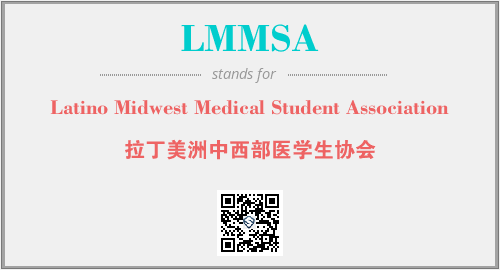 上述内容是“Latino Midwest Medical Student Association”作为“LMMSA”的缩写,解释为“拉丁美洲中西部医学生协会”时的信息,以及英文缩略词LMMSA所代表的英文单词,其对应的中文拼音、详细解释以及在英文中的流行度和相关分类、应用领域及应用示例等。