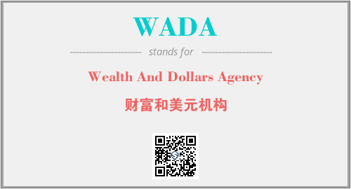 上述内容是“Wealth And Dollars Agency”作为“WADA”的缩写,解释为“财富和美元机构”时的信息,以及英文缩略词WADA所代表的英文单词,其对应的中文拼音、详细解释以及在英文中的流行度和相关分类、应用领域及应用示例等。