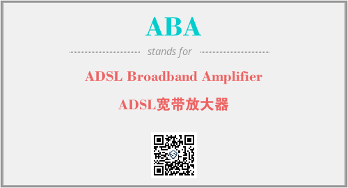 上述内容是“ADSL Broadband Amplifier”作为“ABA”的缩写,解释为“ADSL宽带放大器”时的信息,以及英文缩略词ABA所代表的英文单词,其对应的中文拼音、详细解释以及在英文中的流行度和相关分类、应用领域及应用示例等。