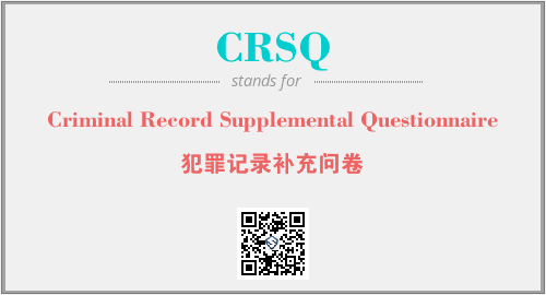 上述内容是“Criminal Record Supplemental Questionnaire”作为“CRSQ”的缩写,解释为“犯罪记录补充问卷”时的信息,以及英文缩略词CRSQ所代表的英文单词,其对应的中文拼音、详细解释以及在英文中的流行度和相关分类、应用领域及应用示例等。