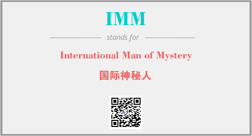 以上为International Man of Mystery英文缩略词IMM的中文解释,以及该英文缩写在英语的流行度、分类和应用领域方面的信息。
