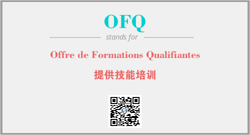 上述内容是“Offre de Formations Qualifiantes”作为“OFQ”的缩写,解释为“提供技能培训”时的信息,以及英文缩略词OFQ所代表的英文单词,其对应的中文拼音、详细解释以及在英文中的流行度和相关分类、应用领域及应用示例等。