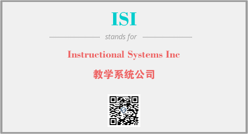 英文缩略词“ISI”经常作为“Instructional Systems Inc”的英文缩写来使用,中文表示:“教学系统公司”。本文将详细介绍英文缩写词ISI所代表英文单词,其对应的中文拼音、详细解释以及在英语中的流行度。此外,还有关于缩略词ISI的分类、应用领域及相关应用示例等。
