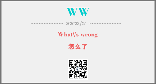 英文缩略词“WW”经常作为“What\'s wrong”的英文缩写来使用,中文表示:“怎么了”。本文将详细介绍英文缩写词WW所代表英文单词,其对应的中文拼音、详细解释以及在英语中的流行度。此外,还有关于缩略词WW的分类、应用领域及相关应用示例等。