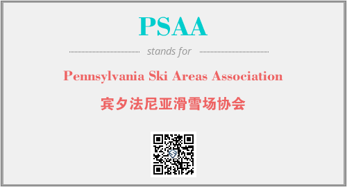 上述内容是“Pennsylvania Ski Areas Association”作为“PSAA”的缩写,解释为“宾夕法尼亚滑雪场协会”时的信息,以及英文缩略词PSAA所代表的英文单词,其对应的中文拼音、详细解释以及在英文中的流行度和相关分类、应用领域及应用示例等。
