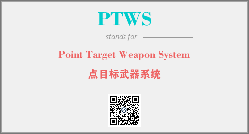 英文缩略词“PTWS”经常作为“Point Target Weapon System”的英文缩写来使用,中文表示:“点目标武器系统”。本文将详细介绍英文缩写词PTWS所代表英文单词,其对应的中文拼音、详细解释以及在英语中的流行度。此外,还有关于缩略词PTWS的分类、应用领域及相关应用示例等。