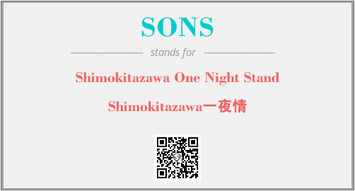 以上为Shimokitazawa One Night Stand英文缩略词SONS的中文解释,以及该英文缩写在英语的流行度、分类和应用领域方面的信息。