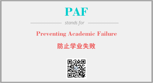 以上为Preventing Academic Failure英文缩略词PAF的中文解释,以及该英文缩写在英语的流行度、分类和应用领域方面的信息。