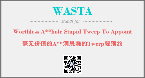 上述内容是“Worthless A**hole Stupid Twerp To Appoint”作为“WASTA”的缩写,解释为“毫无价值的A**洞愚蠢的Twerp要预约”时的信息,以及英文缩略词WASTA所代表的英文单词,其对应的中文拼音、详细解释以及在英文中的流行度和相关分类、应用领域及应用示例等。
