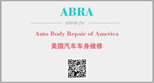 英文缩略词“ABRA”经常作为“Auto Body Repair of America”的英文缩写来使用,中文表示:“美国汽车车身维修”。本文将详细介绍英文缩写词ABRA所代表英文单词,其对应的中文拼音、详细解释以及在英语中的流行度。此外,还有关于缩略词ABRA的分类、应用领域及相关应用示例等。