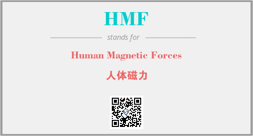 上述内容是“Human Magnetic Forces”作为“HMF”的缩写,解释为“人体磁力”时的信息,以及英文缩略词HMF所代表的英文单词,其对应的中文拼音、详细解释以及在英文中的流行度和相关分类、应用领域及应用示例等。