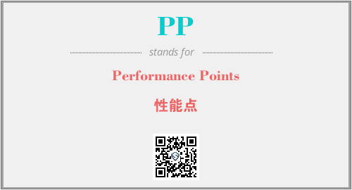 英文缩略词“PP”经常作为“Performance Points”的英文缩写来使用,中文表示:“性能点”。本文将详细介绍英文缩写词PP所代表英文单词,其对应的中文拼音、详细解释以及在英语中的流行度。此外,还有关于缩略词PP的分类、应用领域及相关应用示例等。