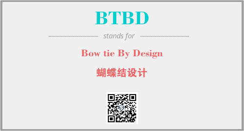 英文缩略词“BTBD”经常作为“Bow tie By Design”的英文缩写来使用,中文表示:“蝴蝶结设计”。本文将详细介绍英文缩写词BTBD所代表英文单词,其对应的中文拼音、详细解释以及在英语中的流行度。此外,还有关于缩略词BTBD的分类、应用领域及相关应用示例等。