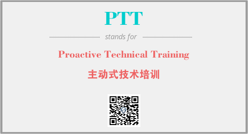 英文缩略词“PTT”经常作为“Proactive Technical Training”的英文缩写来使用,中文表示:“主动式技术培训”。本文将详细介绍英文缩写词PTT所代表英文单词,其对应的中文拼音、详细解释以及在英语中的流行度。此外,还有关于缩略词PTT的分类、应用领域及相关应用示例等。